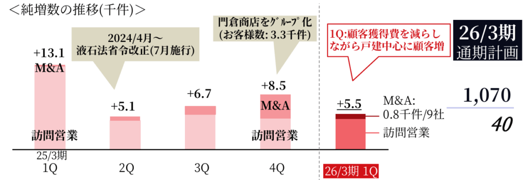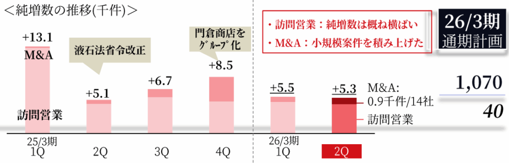 この半年間で1,700件/23社を買収したという内容ですが、正直申し上げてかなり小粒な買収規模です。私の契約先や知り合いの事業者でも、小さくて数百件というレベルですので、どうなんでしょうか、わざわざ社数まで載せる必要があったのかどうか。