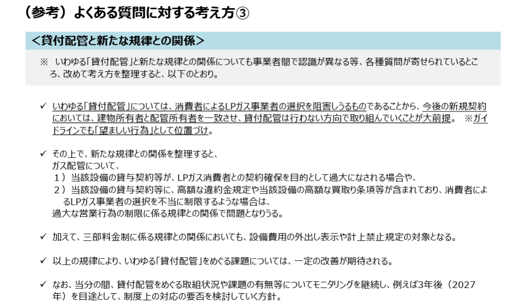 正確に言えば、「貸付配管が禁止された」ということではなく、「貸付配管」というビジネスモデルが法的にほぼ成立しなくなったということです。
